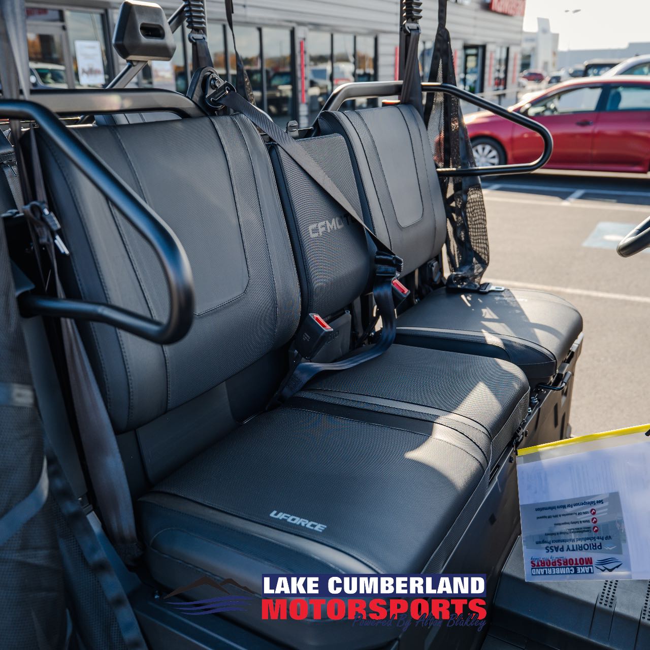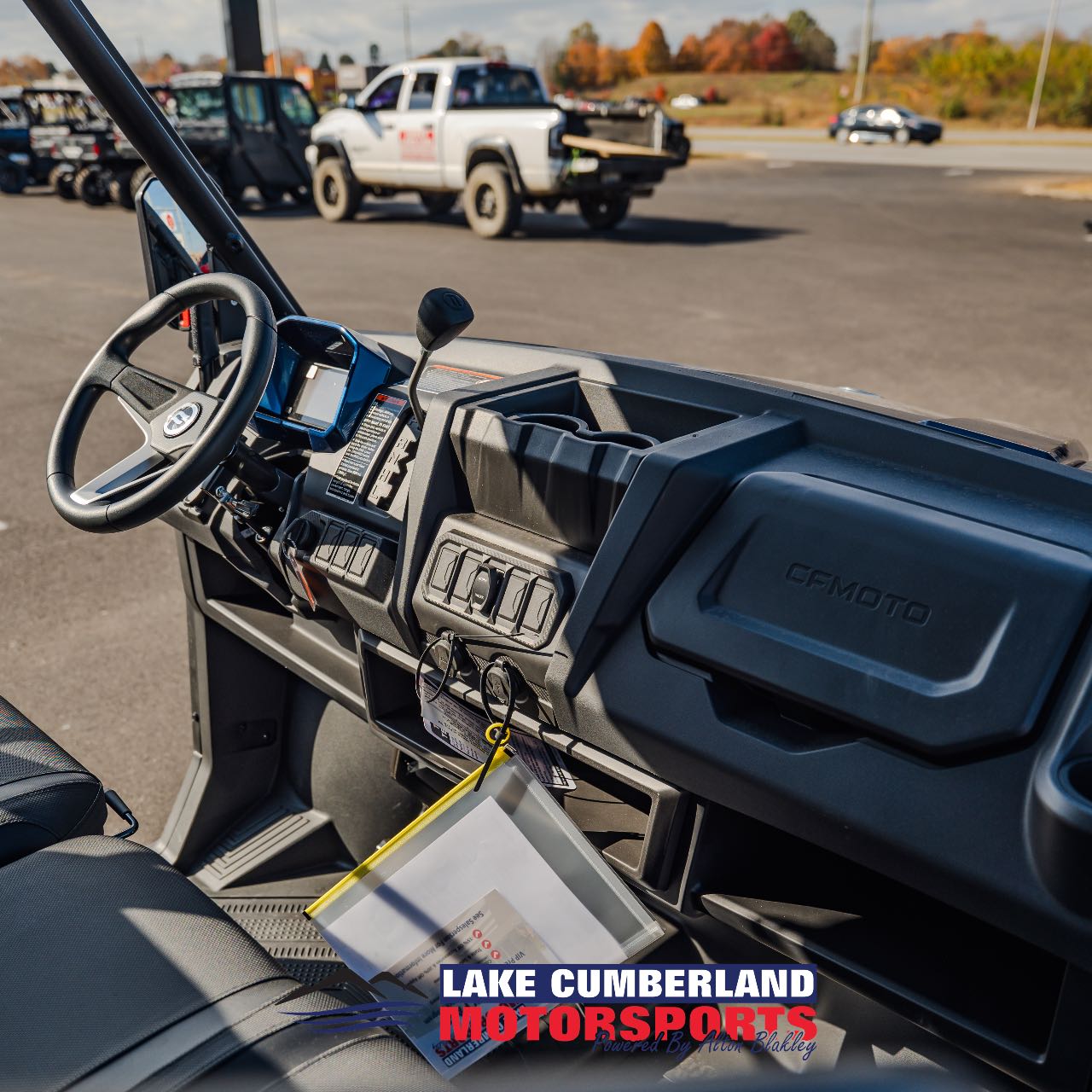 WARNING: CF MOTO recreational vehicles are intended for off-road use only, and can be hazardous to operate. Read Owner’s Manual and all product labels before operating. Never operate on paved roads. Operators and passengers must wear a helmet, eye protection, and protective clothing. Operators must be at least 16 years old with a valid driver’s license. Passengers, if permitted, must be at least 12 years old. Always use seat belts, cab netting, and doors (if equipped). Never operate under the influence of alcohol or drugs. Avoid excessive speed and sharp turns, and never engage in stunt driving. Check state and local laws before operating on trails. Take a safety training course before operating. Contact your CF MOTO dealer for more information.