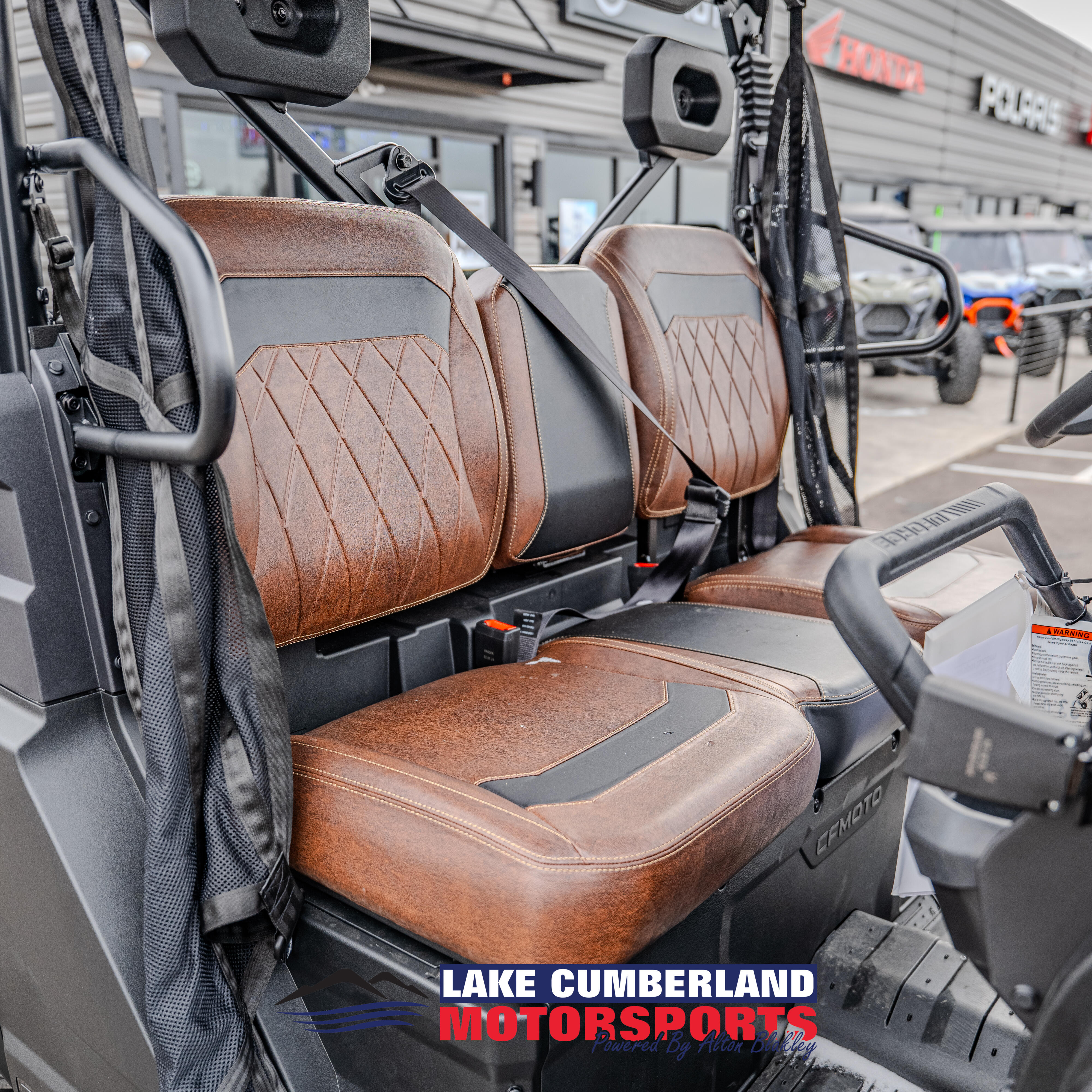 WARNING: CF MOTO recreational vehicles are intended for off-road use only, and can be hazardous to operate. Read Owner’s Manual and all product labels before operating. Never operate on paved roads. Operators and passengers must wear a helmet, eye protection, and protective clothing. Operators must be at least 16 years old with a valid driver’s license. Passengers, if permitted, must be at least 12 years old. Always use seat belts, cab netting, and doors (if equipped). Never operate under the influence of alcohol or drugs. Avoid excessive speed and sharp turns, and never engage in stunt driving. Check state and local laws before operating on trails. Take a safety training course before operating. Contact your CF MOTO dealer for more information.