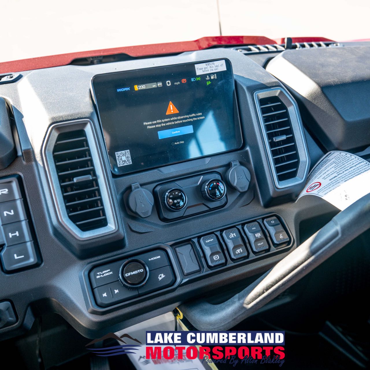 WARNING: CF MOTO recreational vehicles are intended for off-road use only, and can be hazardous to operate. Read Owner's Manual and all product labels before operating. Never operate on paved roads. Operators and passengers must wear a helmet, eye protection, and protective clothing. Operators must be at least 16 years old with a valid driver's license. Passengers, if permitted, must be at least 12 years old. Always use seat belts, cab netting, and doors (if equipped). Never operate under the influence of alcohol or drugs. Avoid excessive speed and sharp turns, and never engage in stunt driving. Check state and local laws before operating on trails. Take a safety training course before operating. Contact your CF MOTO dealer for more information.