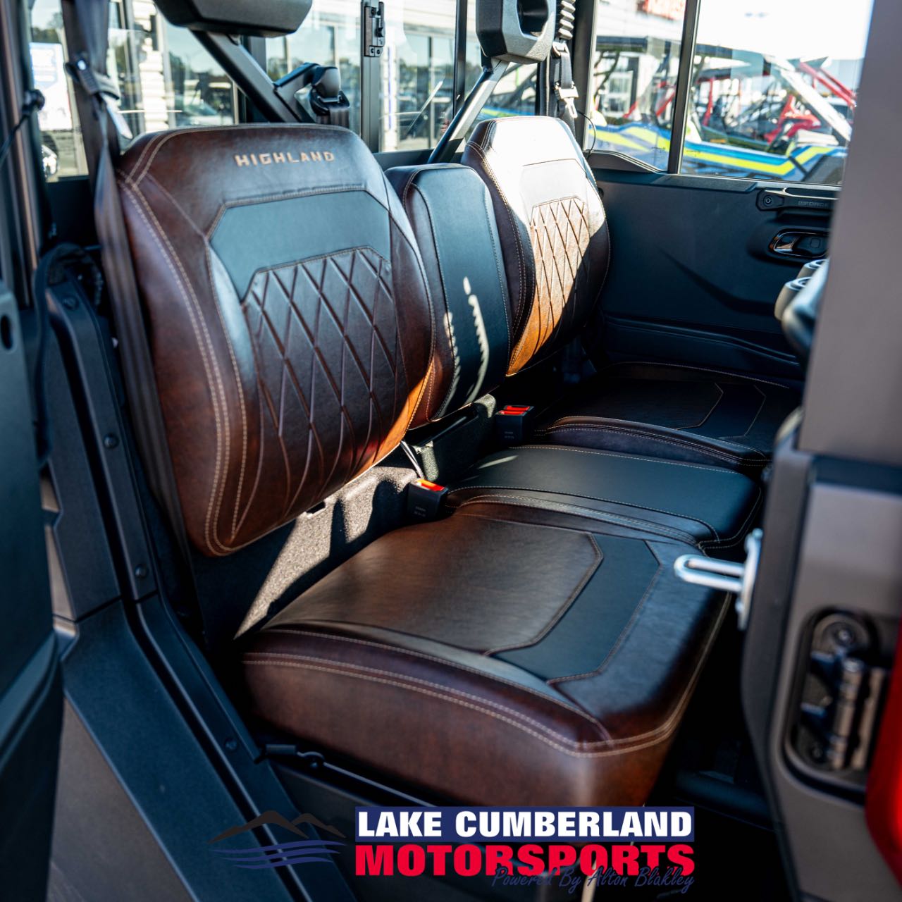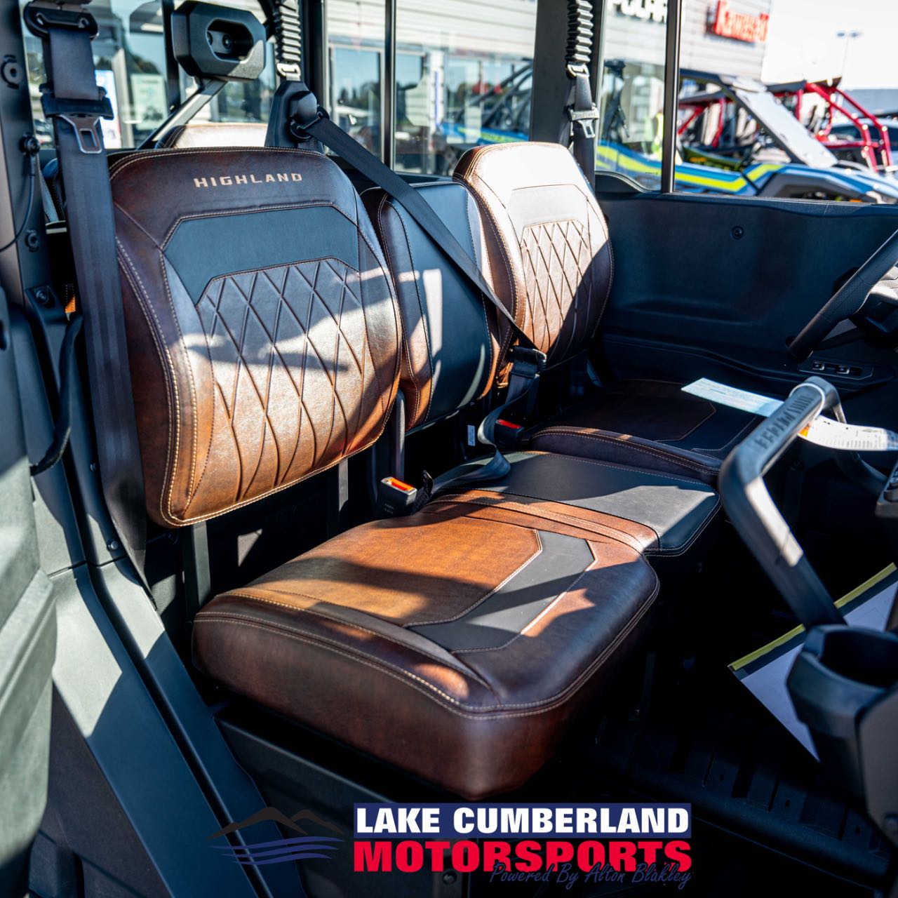 The Highland's interior delivers the sophistication of a luxury SUV, paired with the durability expected in a rugged UTV. The premium interior provides seating for six passengers. High-quality materials and precision stitching endure the harshest conditions. A sound-dampening headliner minimizes cabin noise, ensuring a quieter, more comfortable ride.