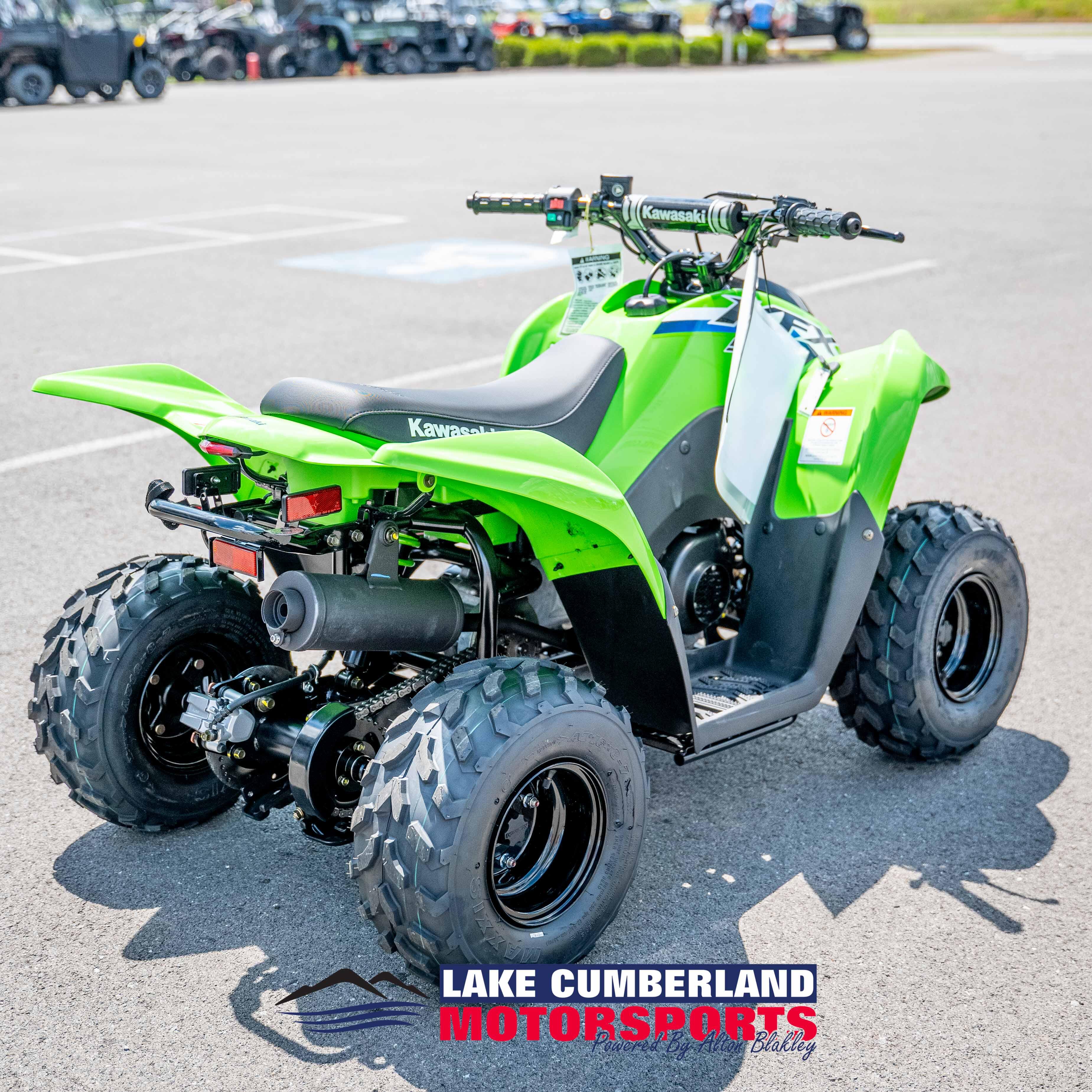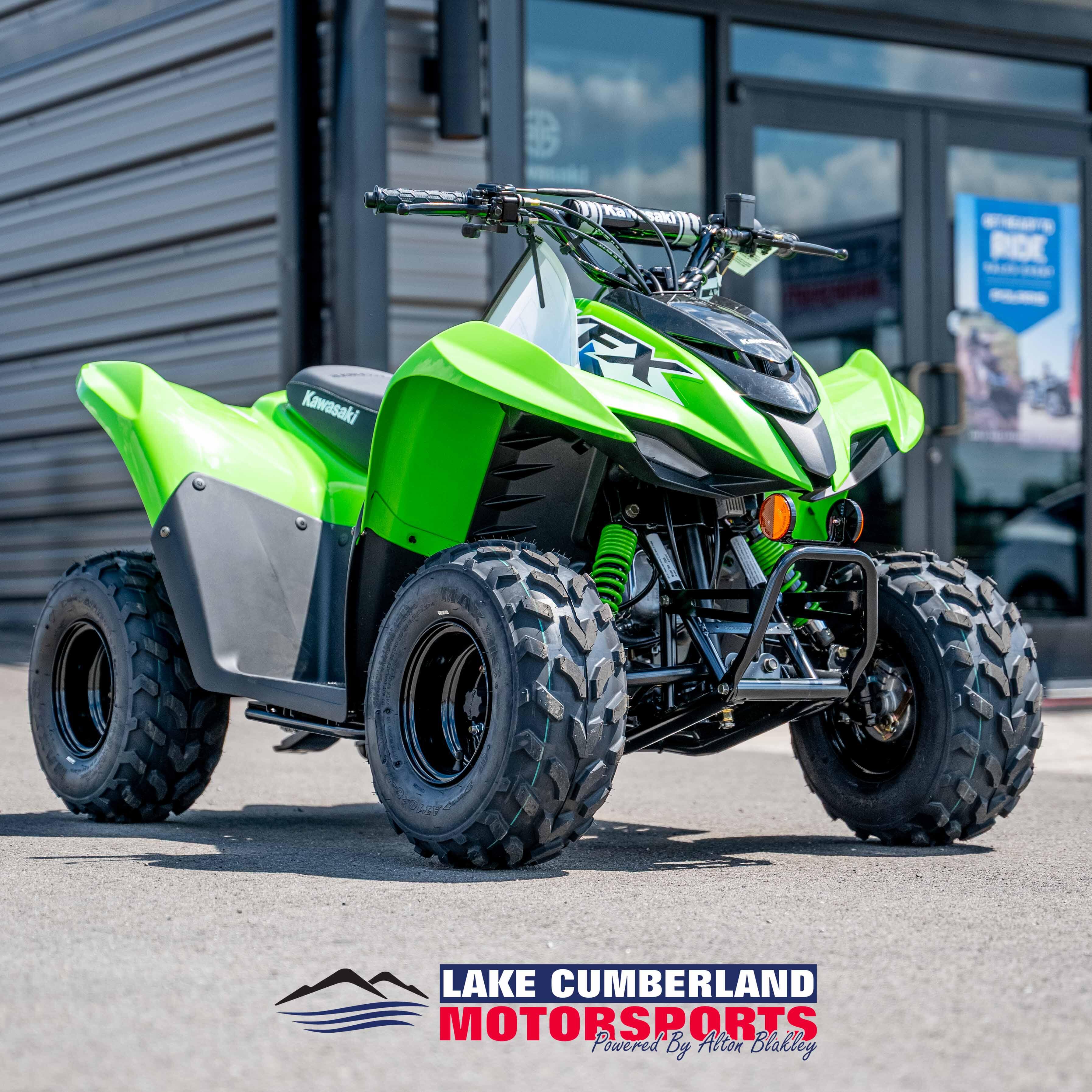 KAWASAKI CARES: Read Owner's Manual and all on-product warnings. Warning: ATVs can be hazardous to operate. For your safety: Always wear a helmet, eye protection, and protective clothing. Never carry a passenger. Never ride under the influence of drugs or alcohol. Never ride on public roads or pavement. Avoid excessive speeds and stunt driving. Be extra careful on difficult terrain. Kawasaki's KFX®50 is recommended for use only by persons 6 or older, and the KFX®90 is recommended for use only by persons 10 and older. All children under 16 riding ATVs should always have direct adult supervision. Kawasaki ATVs with engines over 90cc are recommended for use only by persons 16 years of age or older. Kawasaki also recommends that all ATV riders take a training course. For more information, see your dealer, call the ATV Safety Institute at 1-800-887-2887, or go to www.atvsafety.org. ©2026 Kawasaki Motors Corp., U.S.A.